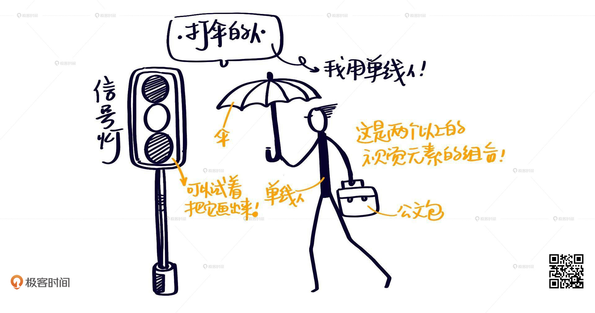 我们就拿一个“普通上班族李雷的一天”来举例子吧。看看一天之中他接触到的视觉图标有哪些?这些视觉图标又是由哪些基础元素组成的?在这个过程中,你也可以想想,如果你给“自己的一天”做一个视觉笔记,你会记录下什么东西呢?这些视觉元素又为你的“剧本”助力了什么?