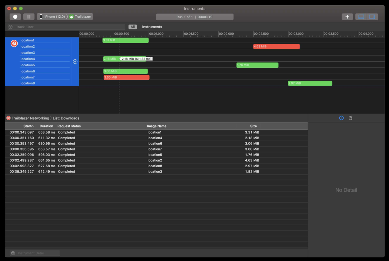 os_signpost(.begin, log: parsinglog, name:"Parsing", "Parsing started SIZE:%ld", data.count)// Decode the JSON we just downloadedlet result = try jsonDecoder.decode(Trail.self, from: data)os_signpost(.end, log: parsingLog, name:"Parsing", "Parsing finished")